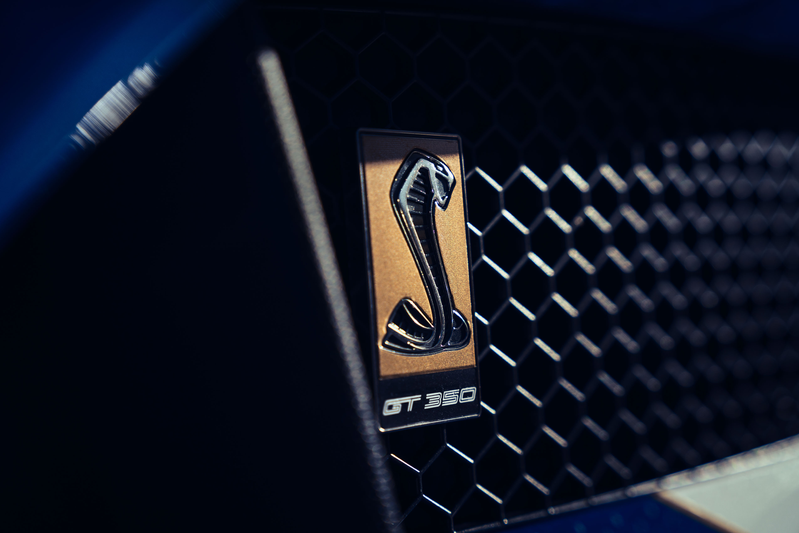 The GT350 features an aggressive and aerodynamic design, with a prominent front grille, hood vents, and a rear spoiler.